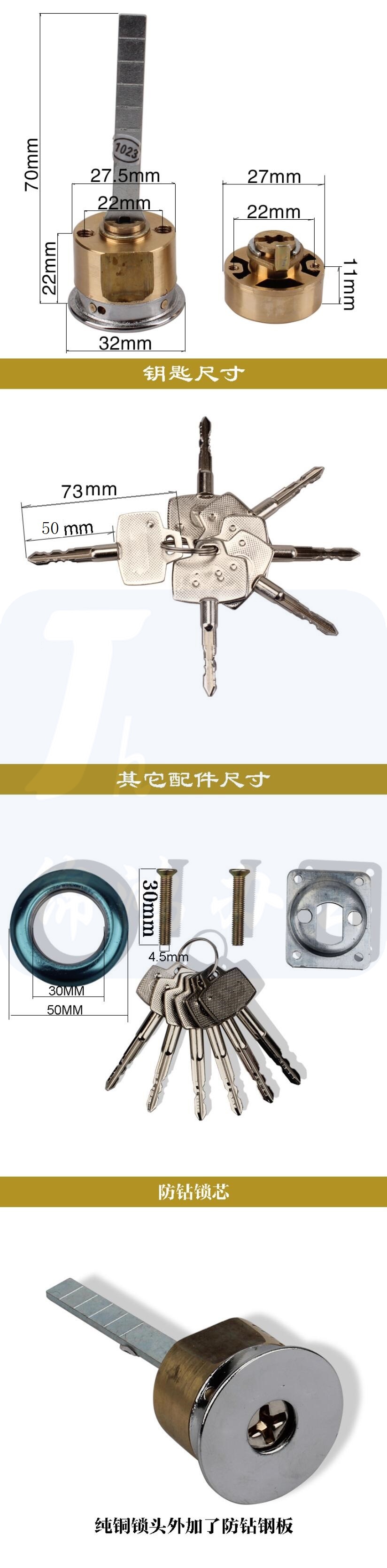 十字防钻锁芯 通用型 带6把钥匙