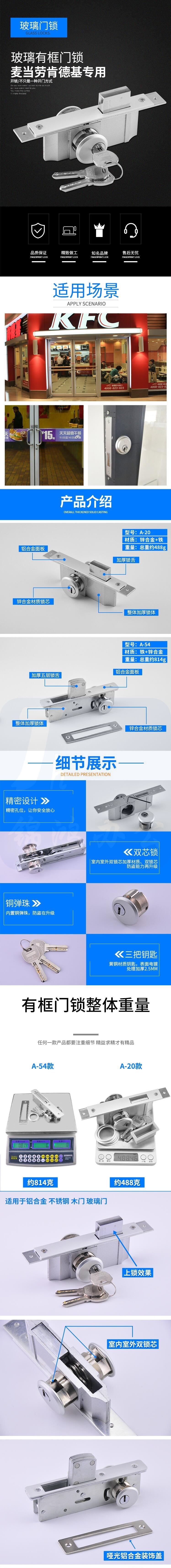肯德基门锁 麦当劳门锁 平开门锁 铝合金门锁 玻璃门锁 货号:HXE