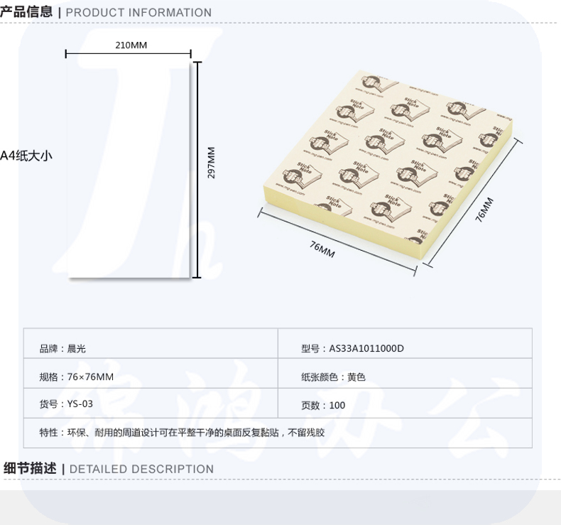 晨光YS-03记事贴 留言贴 便利贴 N次贴 76*76mm 100页 /本