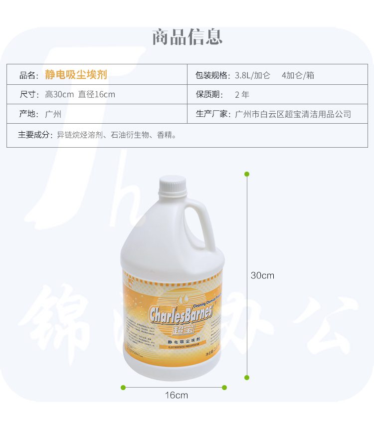 超宝 静电吸尘埃剂尘推液静电水地拖油除尘剂尘推油地板清洁剂3.8L 1瓶装