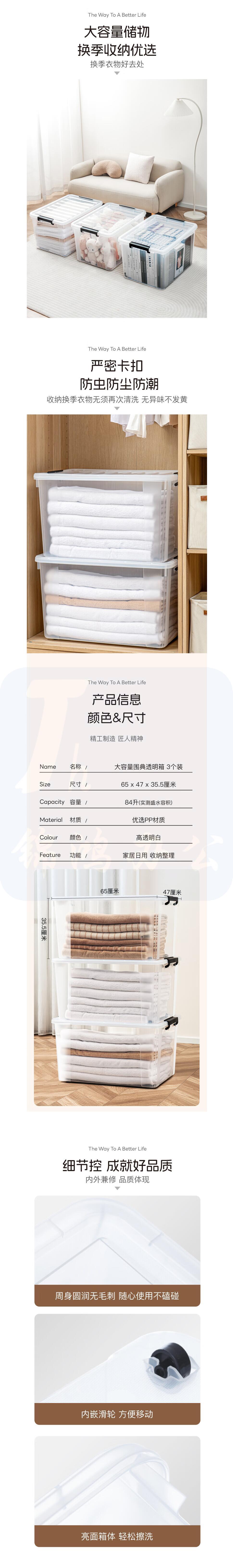 禧天龙 塑料衣物收纳箱 玩具整理箱84L 透明 带轮 货号:TXH