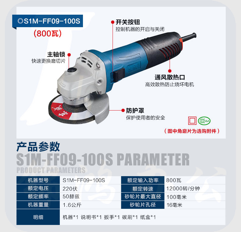 东成 角磨机/角向磨光机 SIM-FF09-100S(800W)
