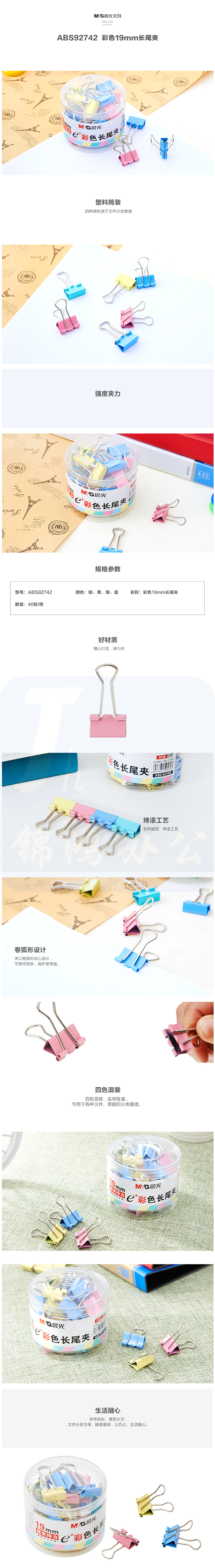 晨光 5号彩色长尾夹19mm(40个装)ABS92742