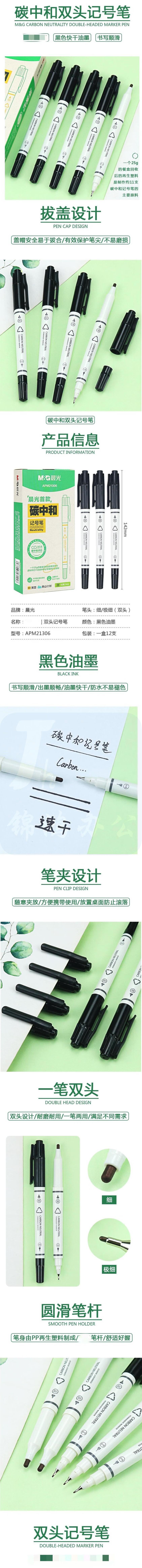 晨光 双头记号笔12支装 环保记号笔 APM21306 黑色