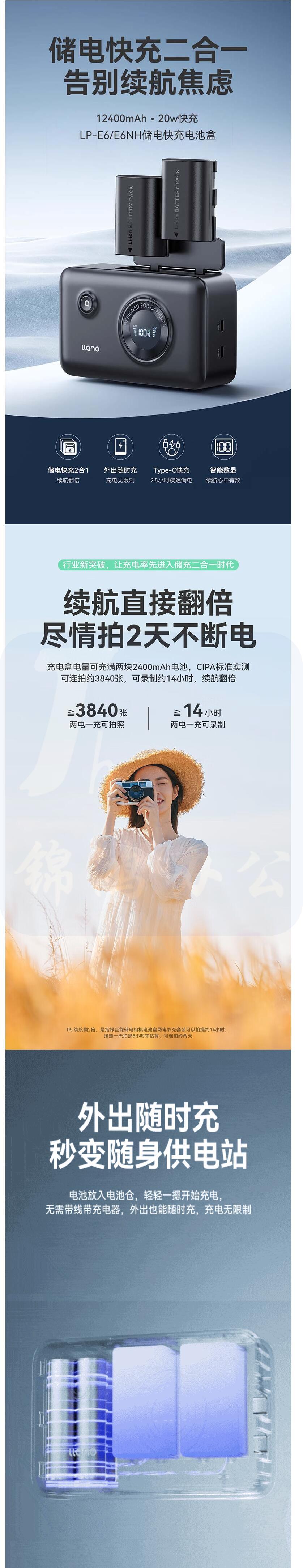 绿巨能 12400mAh 双电池快充充电盒 货号:LJ