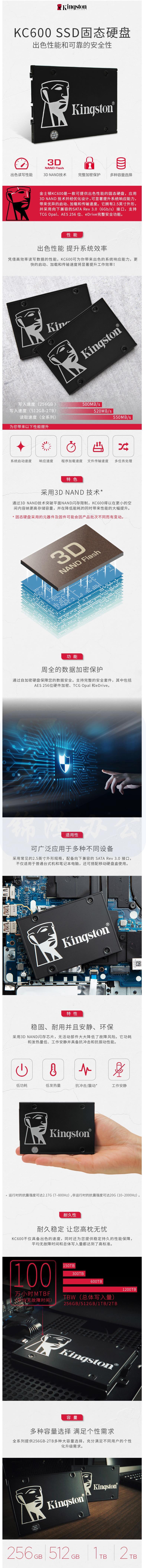 金士顿 2TB SATA3 SSD KC600系列硬盘
