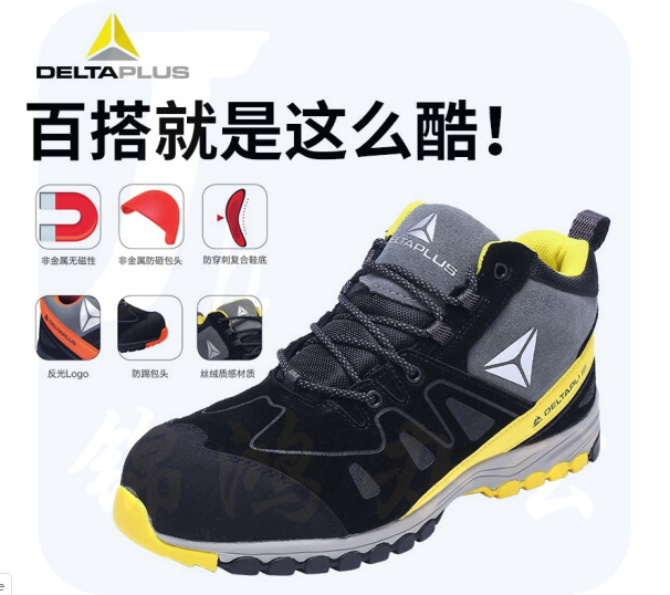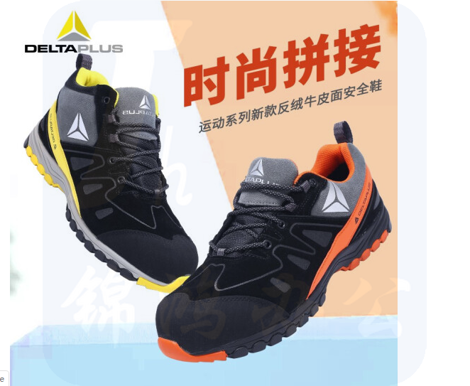 代尔塔 301339(黄黑色-高帮) 新款劳保鞋 运动系列反绒牛皮面安全鞋