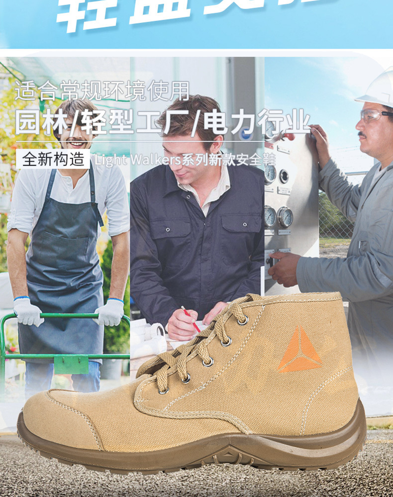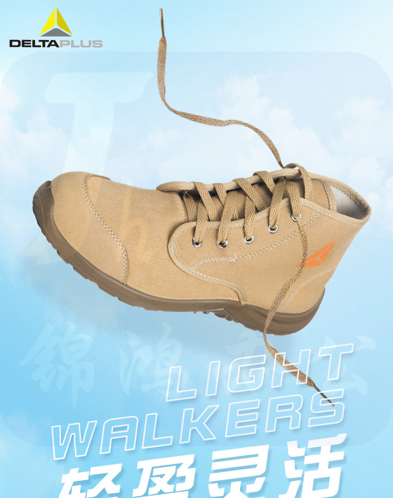 代尔塔 301334 米色19年新款复古时尚劳保鞋 轻盈帆布透气 防砸 防穿刺 防静电耐油 中帮安全鞋