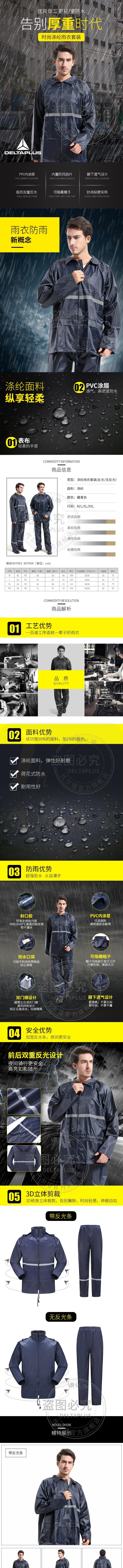 代尔塔 407003 M码 分体式涤纶雨衣套装 藏青色