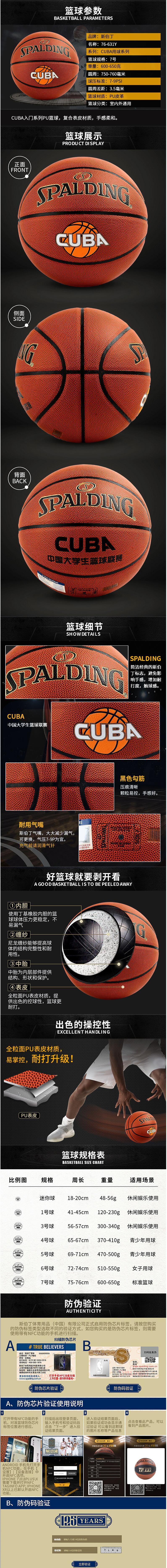 斯伯丁 76-631Y 篮球室内外7号PU材质成人儿童蓝球