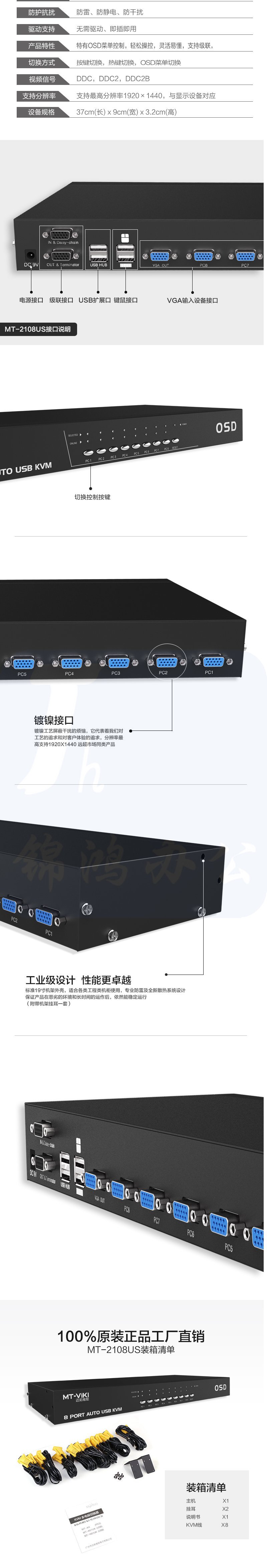 迈拓维矩MT-2108US KVM切换器8进1出级联八进一出多电脑VGA切换器