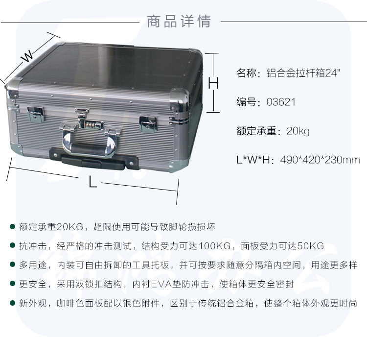 世达(SATA)铝合金拉杆箱24"/五金大号24寸多功能拉杆工具箱铝合金航空道具箱03621