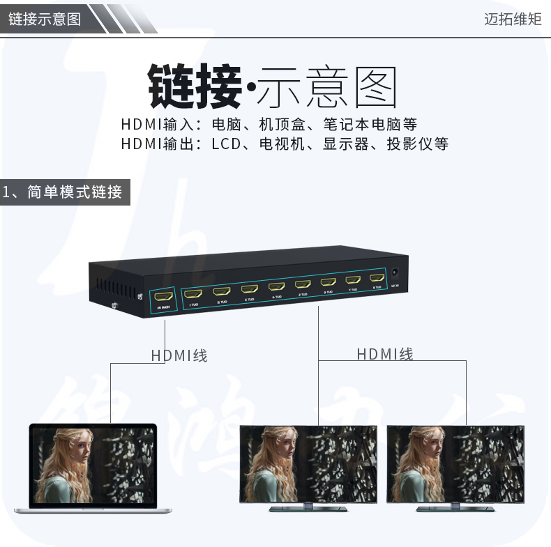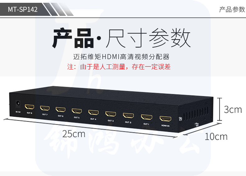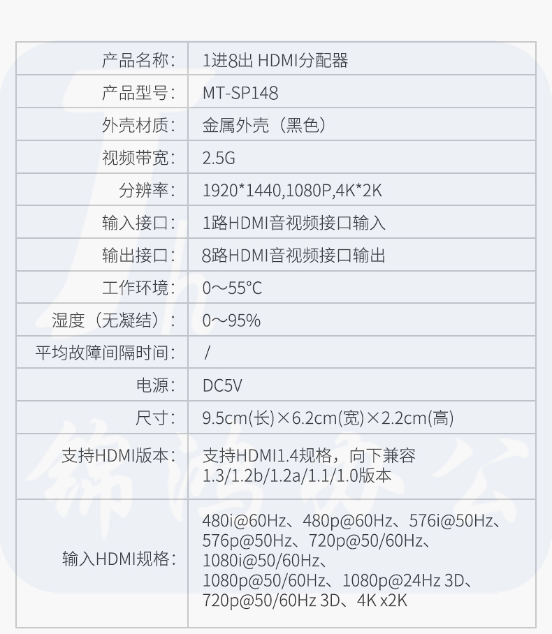 迈拓维矩MT-SP148 hdmi分配器1进8出3D高清4K音视频一分八分频共享器