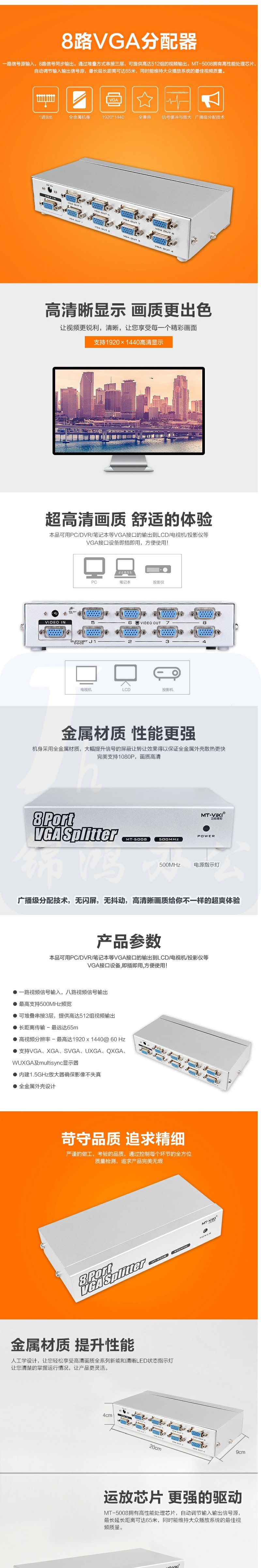 迈拓维矩MT-5008高清1进8出电脑显示器工程级VGA分配器