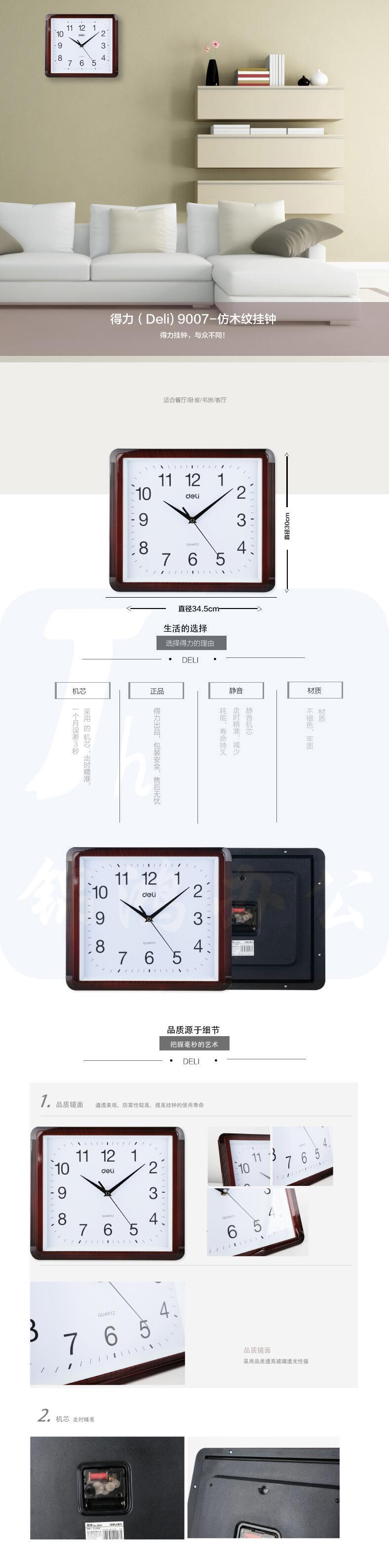 得力(deli) 9007简约现代方形时钟 电子时钟挂钟客厅钟表办公静音钟