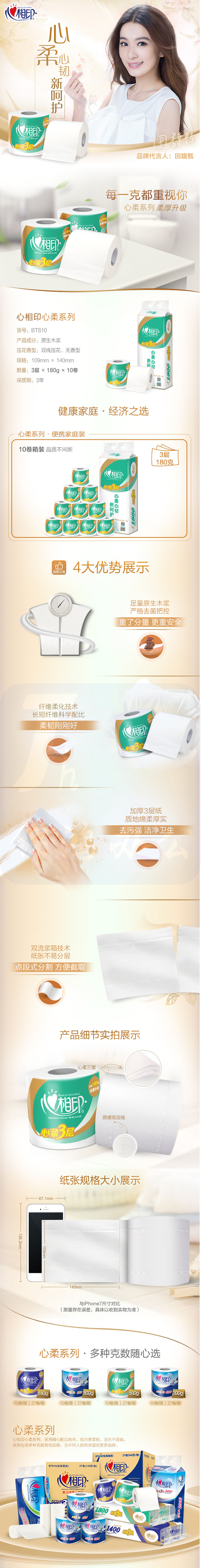 心相印 BT810 卷筒卫生纸 3层 180g 10卷/提