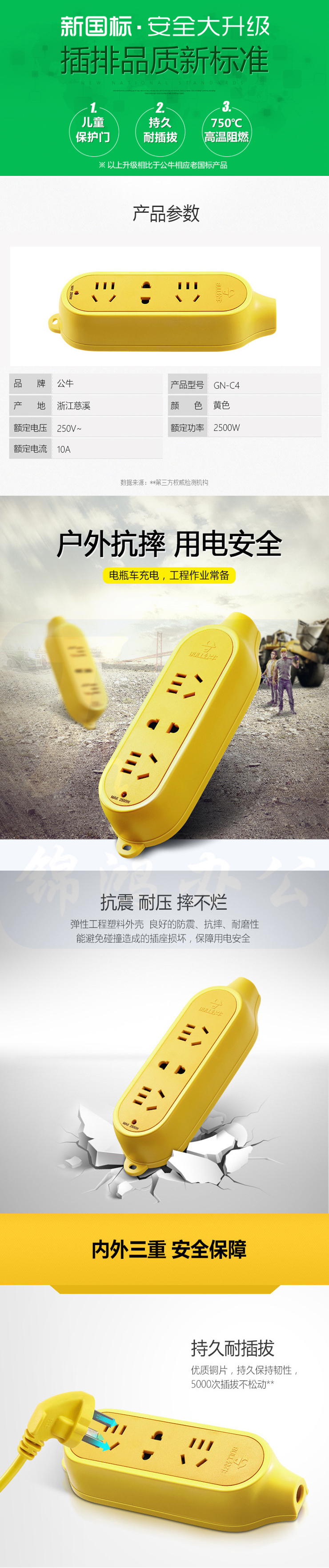 公牛(BULL) GN-C4 不带电源线 无线 摔不烂插座 10A250V