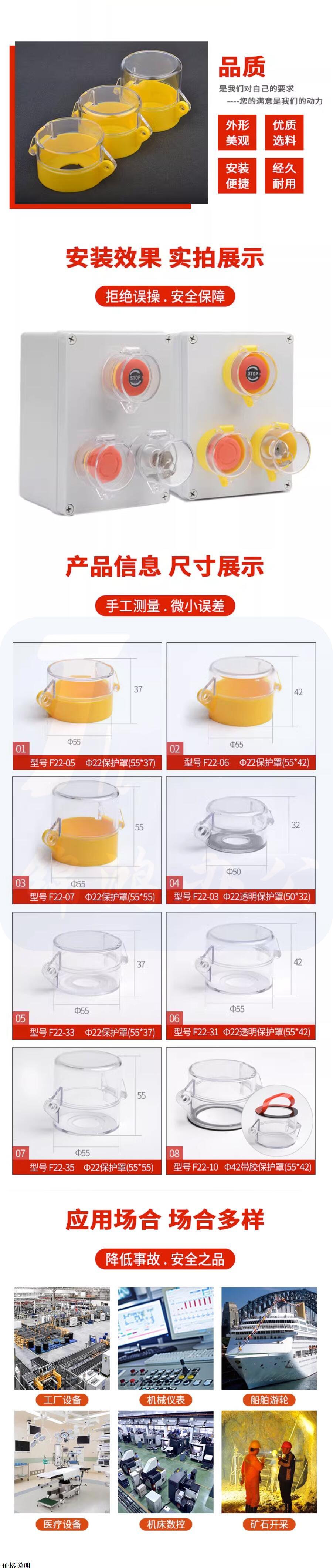 急停按钮保护罩 自粘免拆透明旋钮翻盖 黄底透明盖55X55
