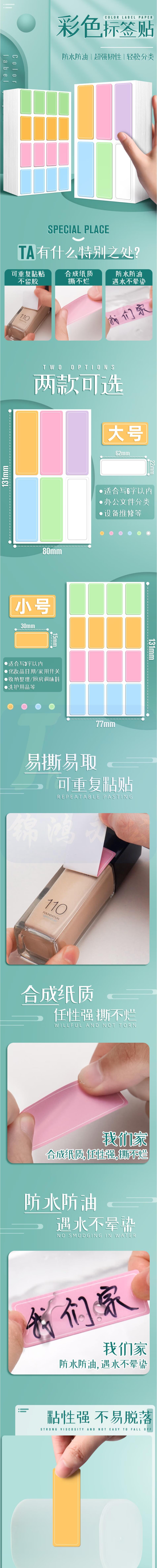 彩色标签贴纸防水(10色400张)