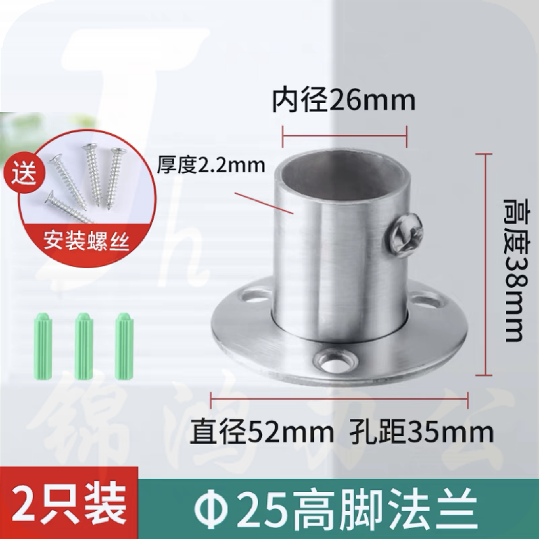 加厚挂衣杆配件 衣杆托底座法兰座 25高脚法兰座 2个 货号:JC
