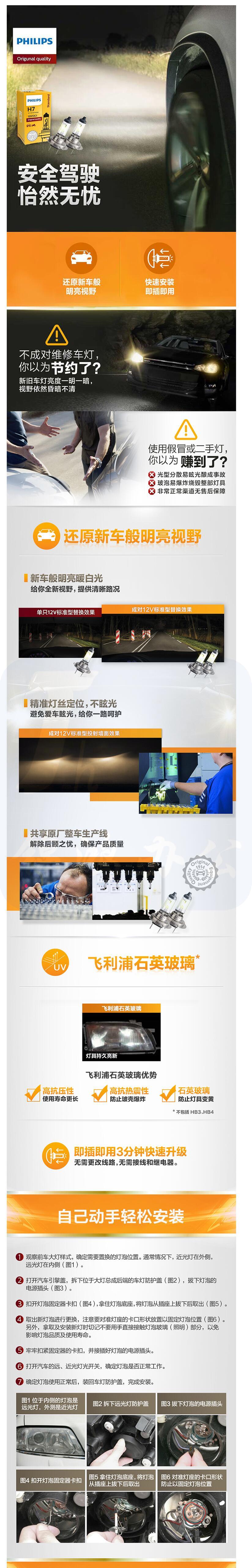 飞利浦 汽车卤素大灯 H7灯泡 55W