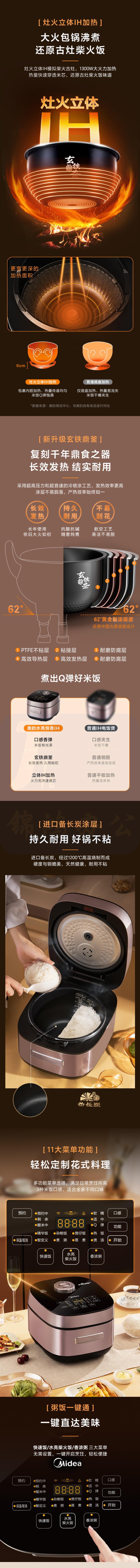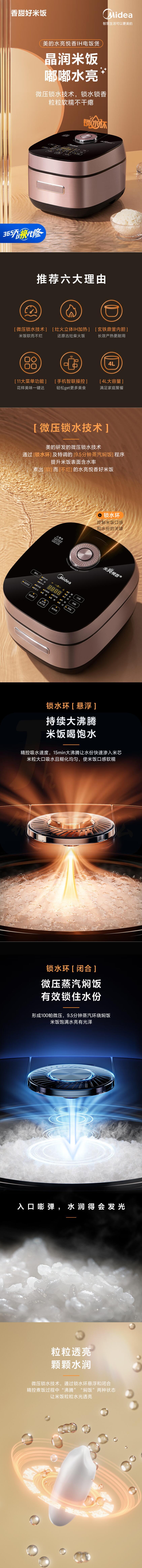 美的 4L电饭煲Pro电饭锅智能微压焖香触屏多功能米饭锅MB-HS410