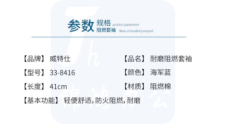 威特仕 33-8416雄蜂王海军蓝阻燃棉电焊耐磨套袖手袖41cm长阻燃套袖
