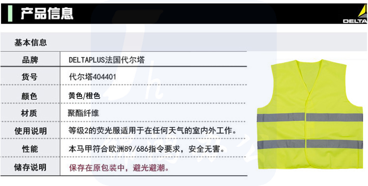 代尔塔 404401 两横 黄色反光背心 反光马甲