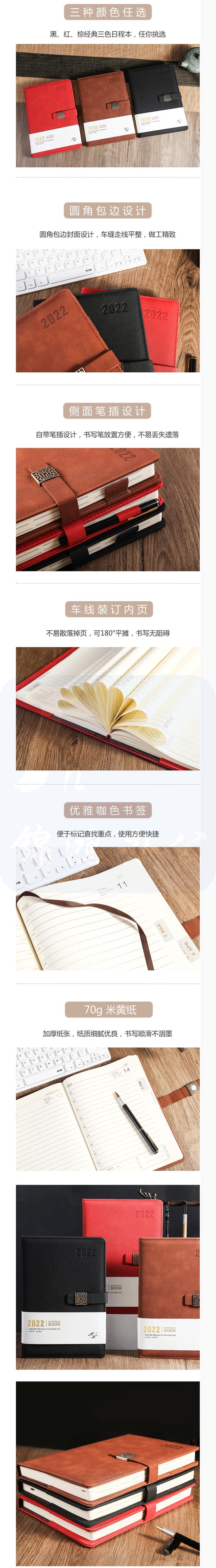 申士2023年日程本B5 商务记事本 年历笔记本 (黑、棕、红备注 )