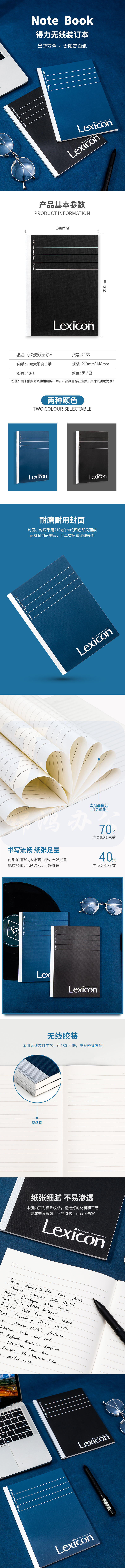 得力12本装A5无线装订本40张软抄本210*148mm(混)2155