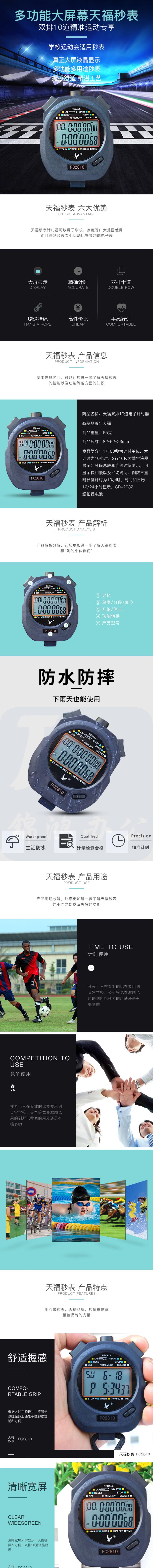 天福PC2810记忆秒表计时器 双排10道