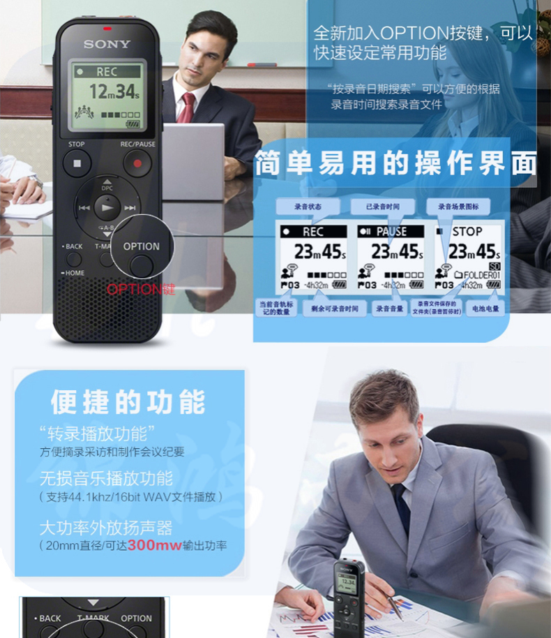 索尼 ICD-PX470 4GB 数码录音笔 便携式录音棒支持线性录音