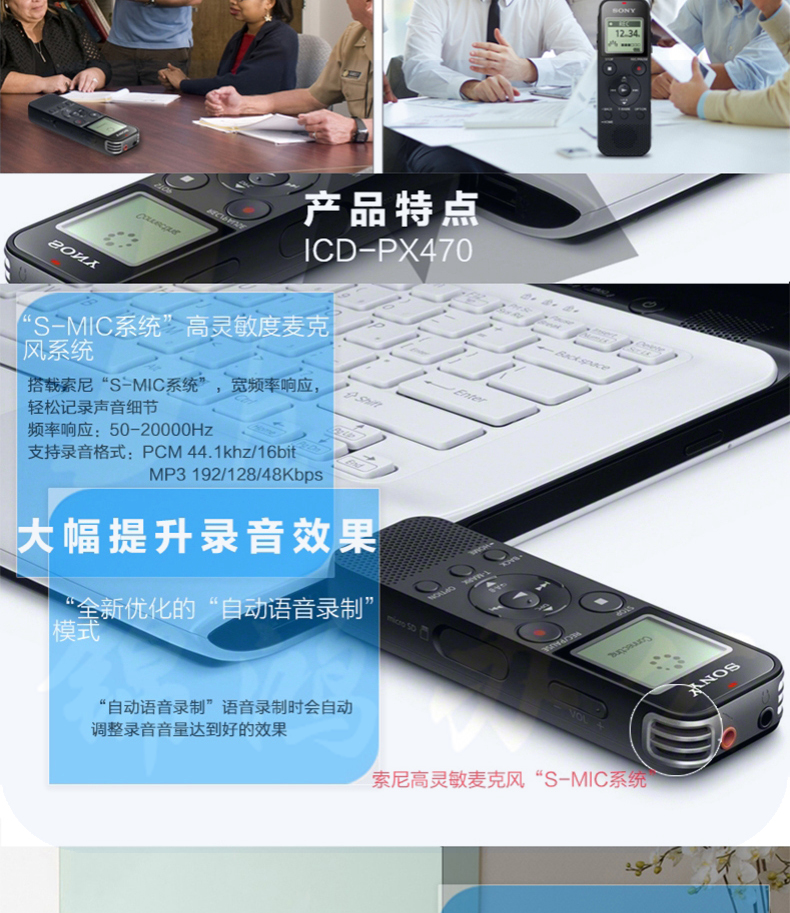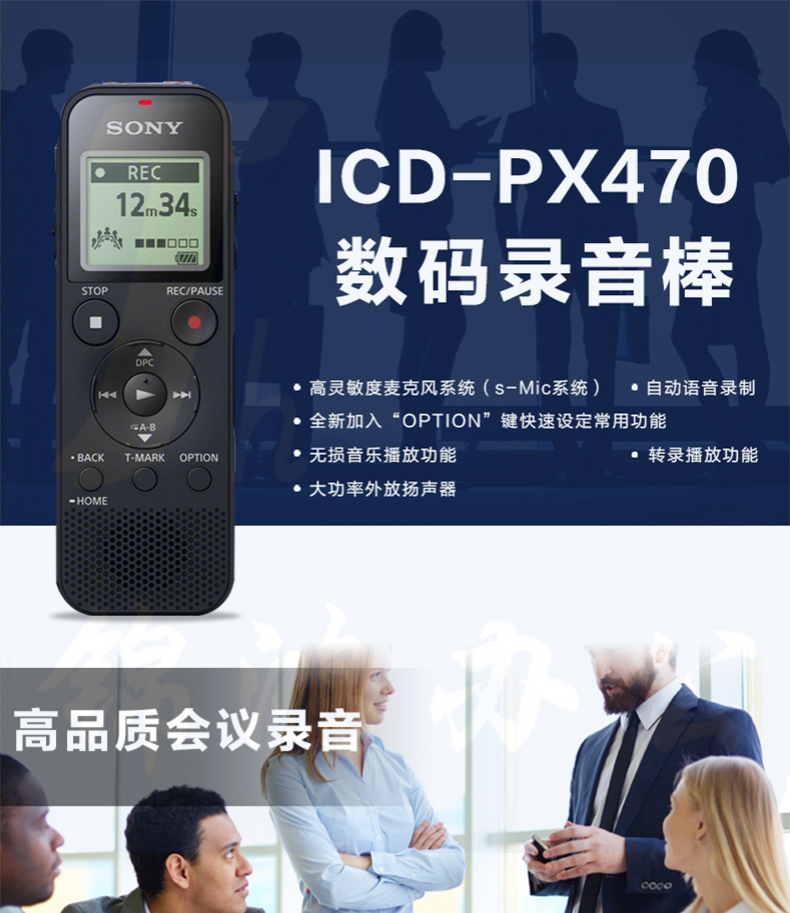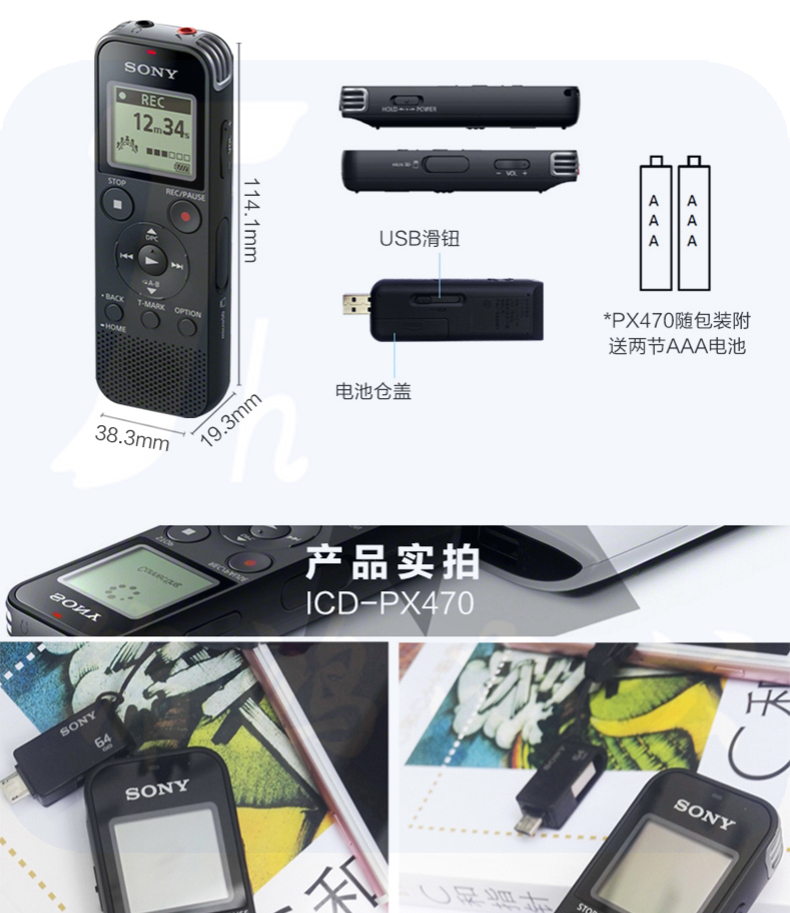 索尼(SONY) 数码录音笔便携式学习型录音棒支持线性录音ICD-PX470 4GB