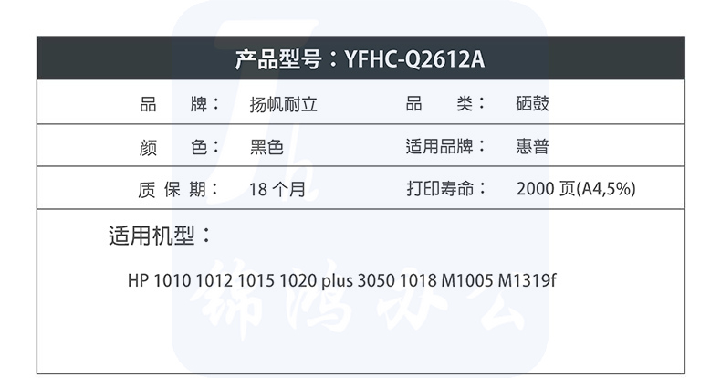 扬帆耐立 Q2612A 适用惠普HP 1010 1020 1018 M1005 M1319f 佳能LBP2900黑色