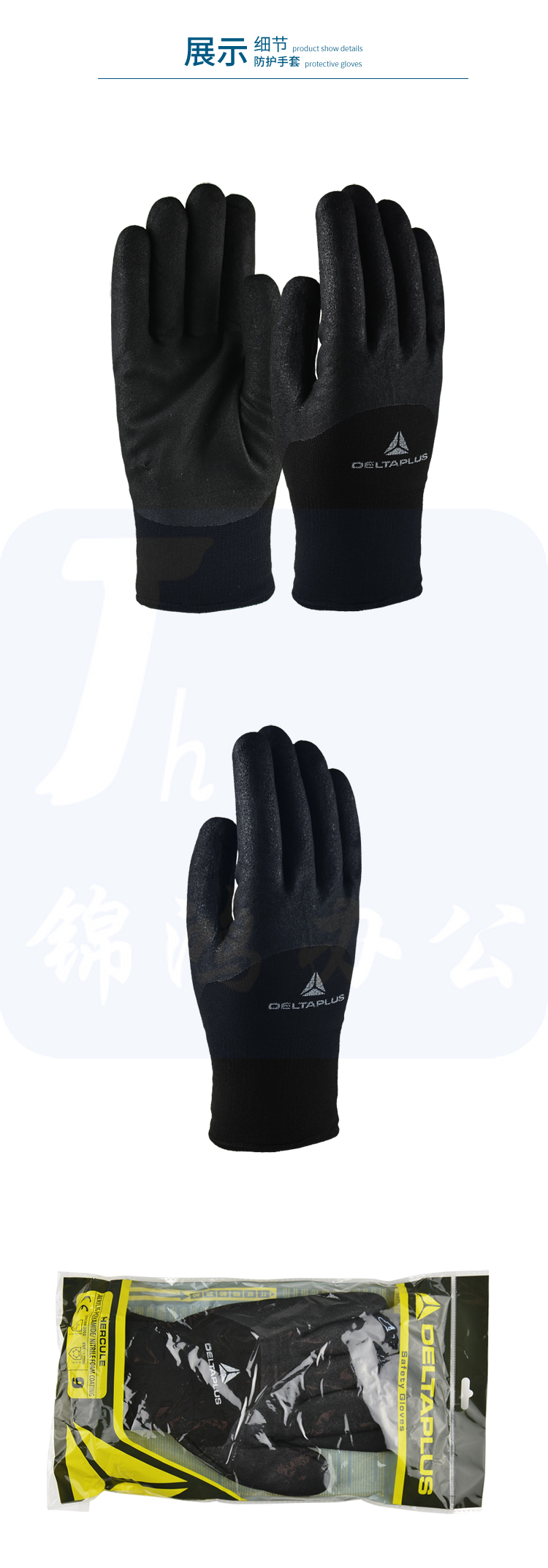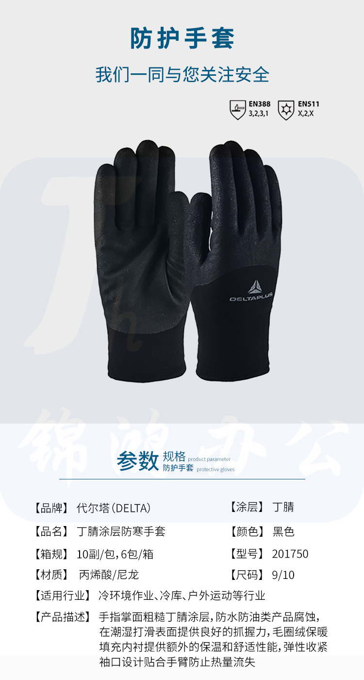 代尔塔/DELTAPLUS 201750 丁腈涂层保暖手套 加厚耐磨秋冬季防寒手套