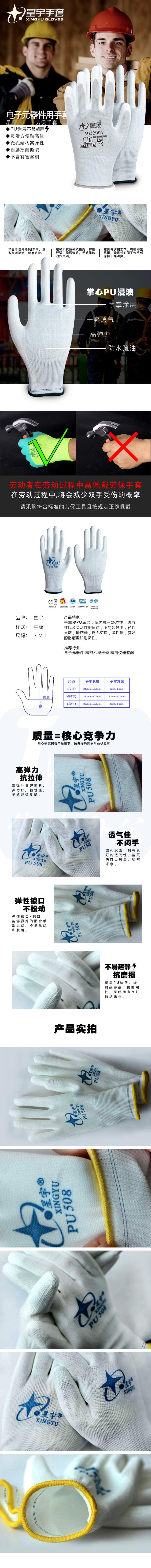 星宇 浸胶手套 涂掌夏季轻薄透气防滑电子厂装配防静电手套PU2001