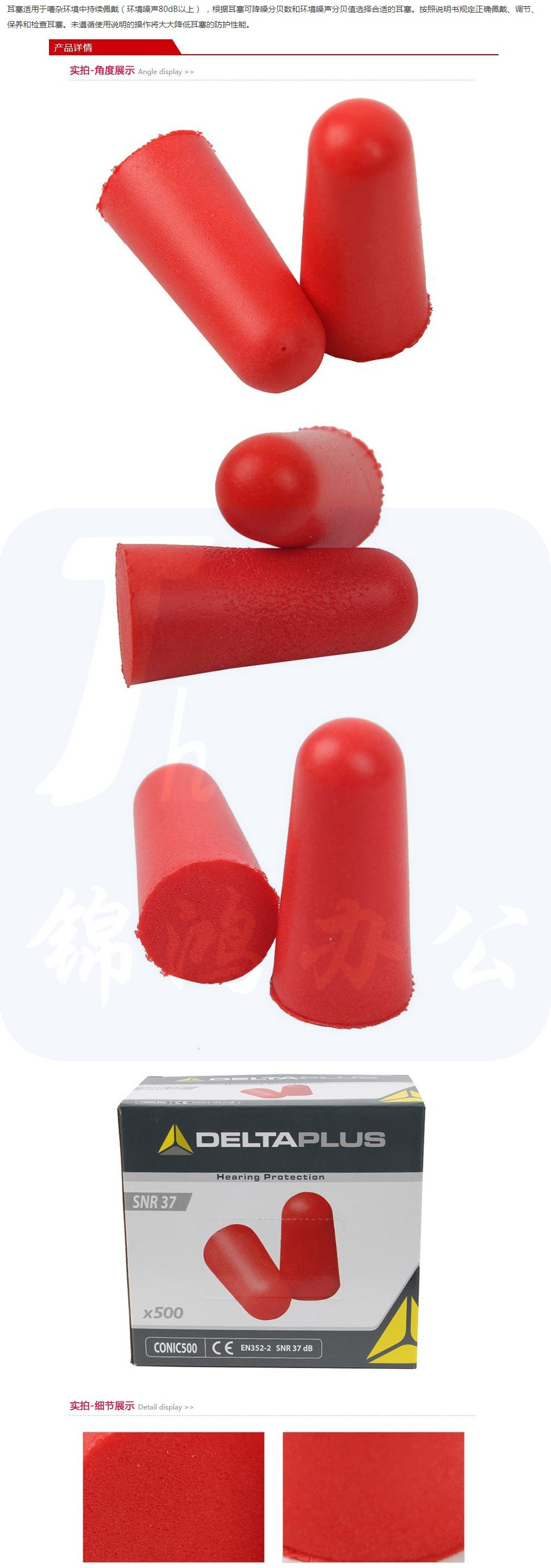 代尔塔 103107 大包装500副PU耳塞 CONIC500 红色 5盒/箱 耳部防护