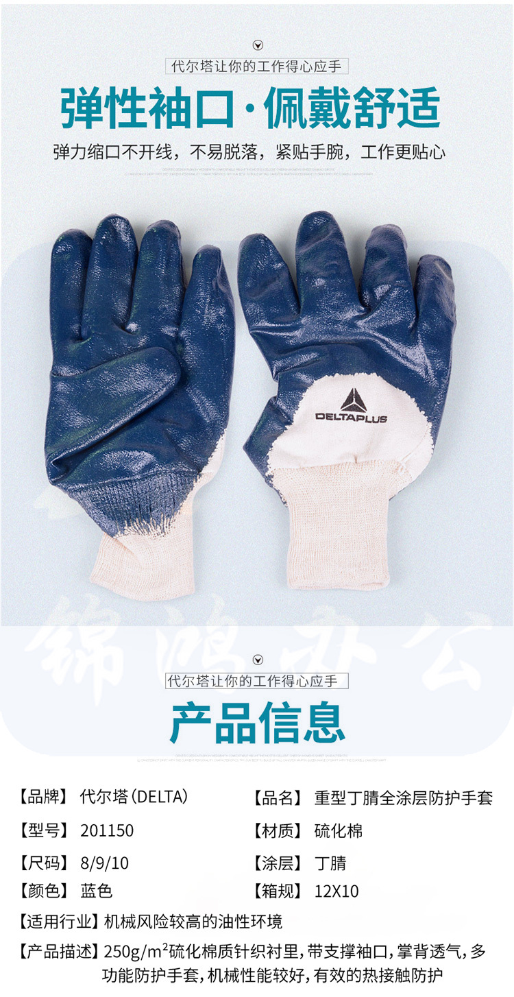 代尔塔 201150 重型丁腈3/4涂层手套