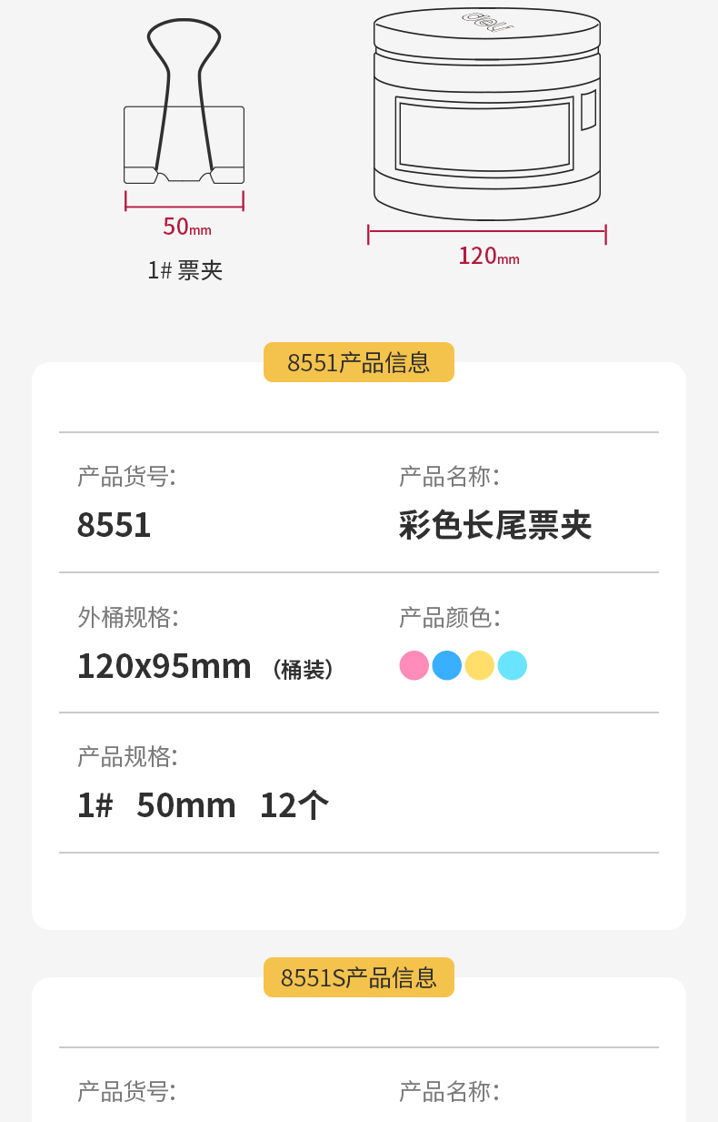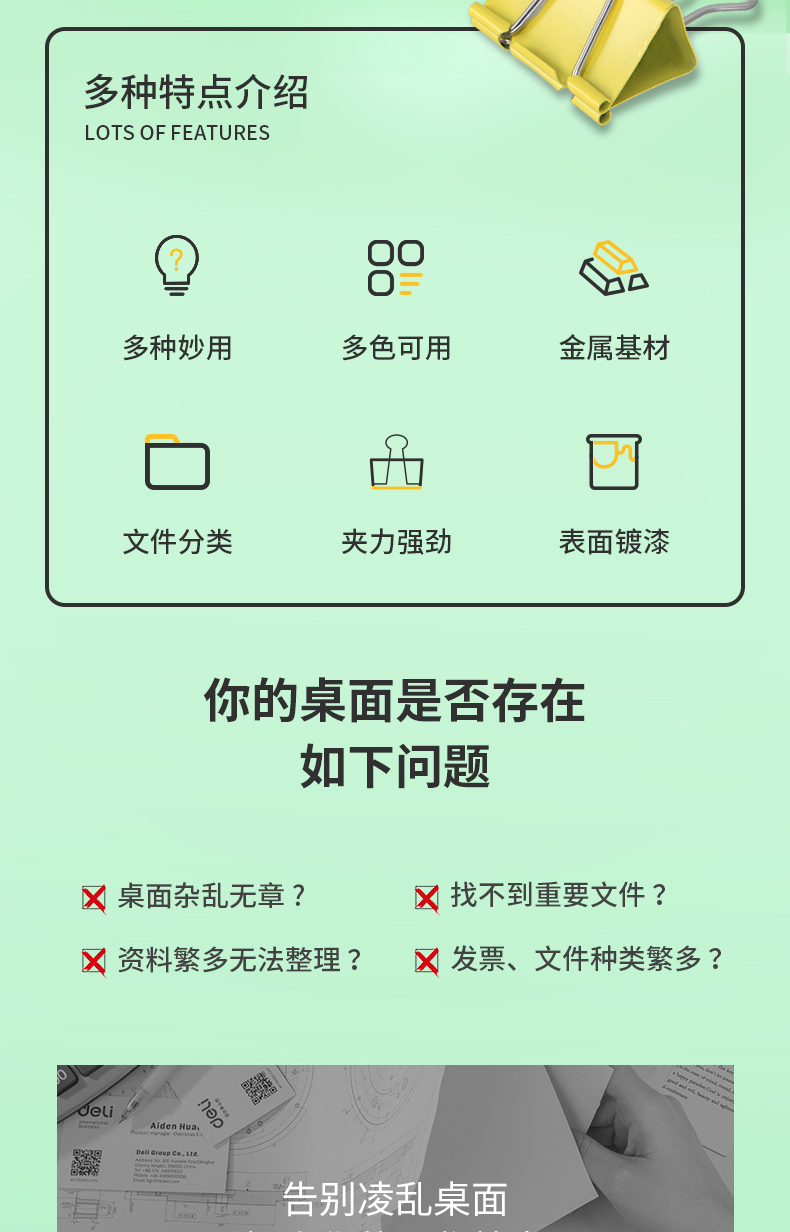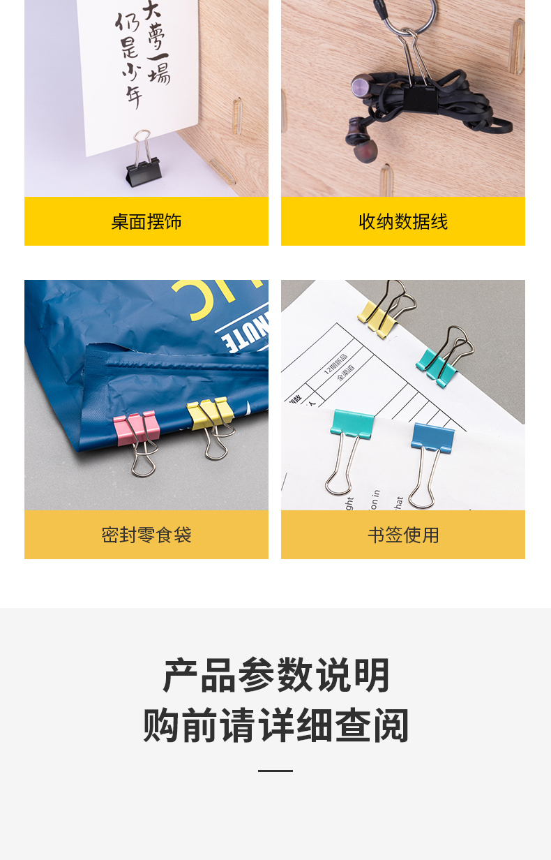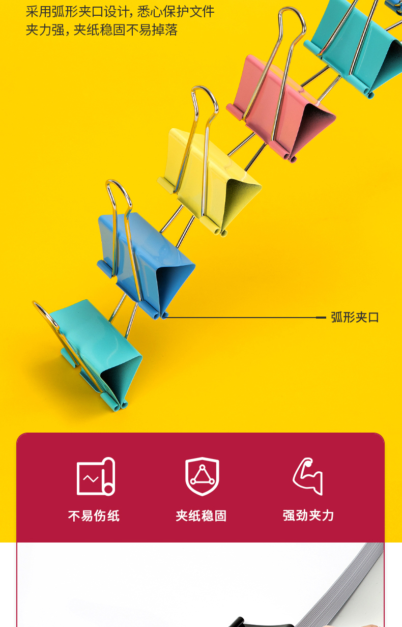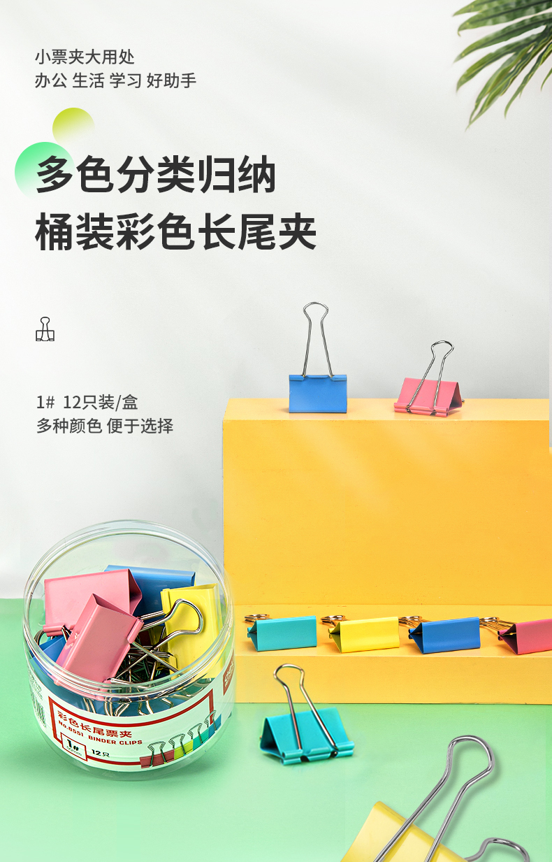 得力长尾夹燕尾夹办公用品彩色金属票据夹小号文具大号资料夹子分类长尾票夹收纳食品照片创意试卷强力铁夹 【彩色款】12只(50mm)