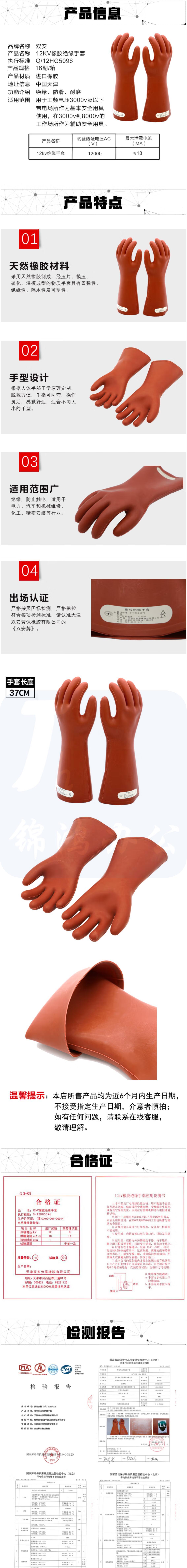 双安牌 12KV 绝缘手套接线维修电工手套