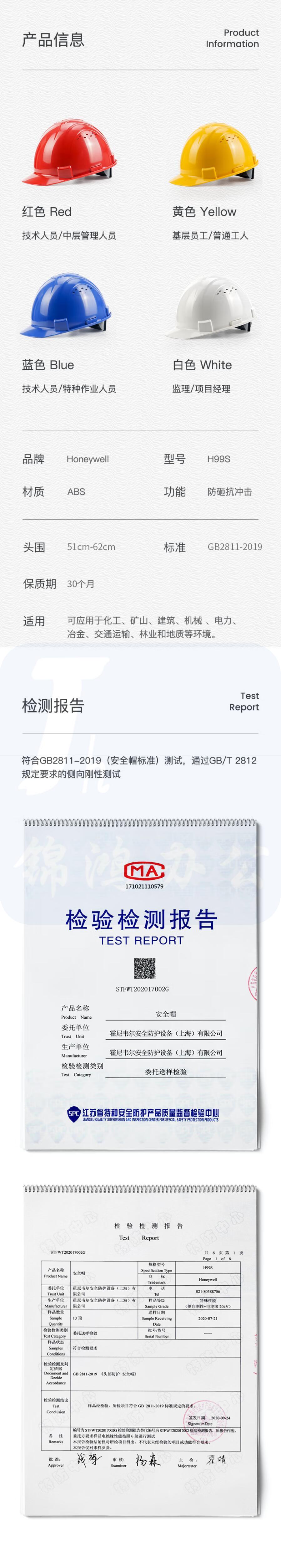 霍尼韦尔 安全帽 H99 ABS 抗冲击 白色 有透气孔 安全帽