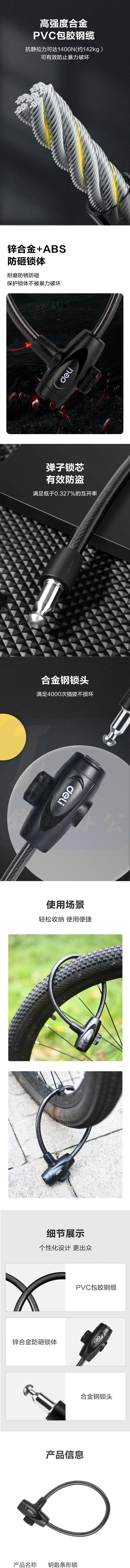 得力 加粗钢缆锁1.2米长 防盗链条锁钢丝锁DW4200
