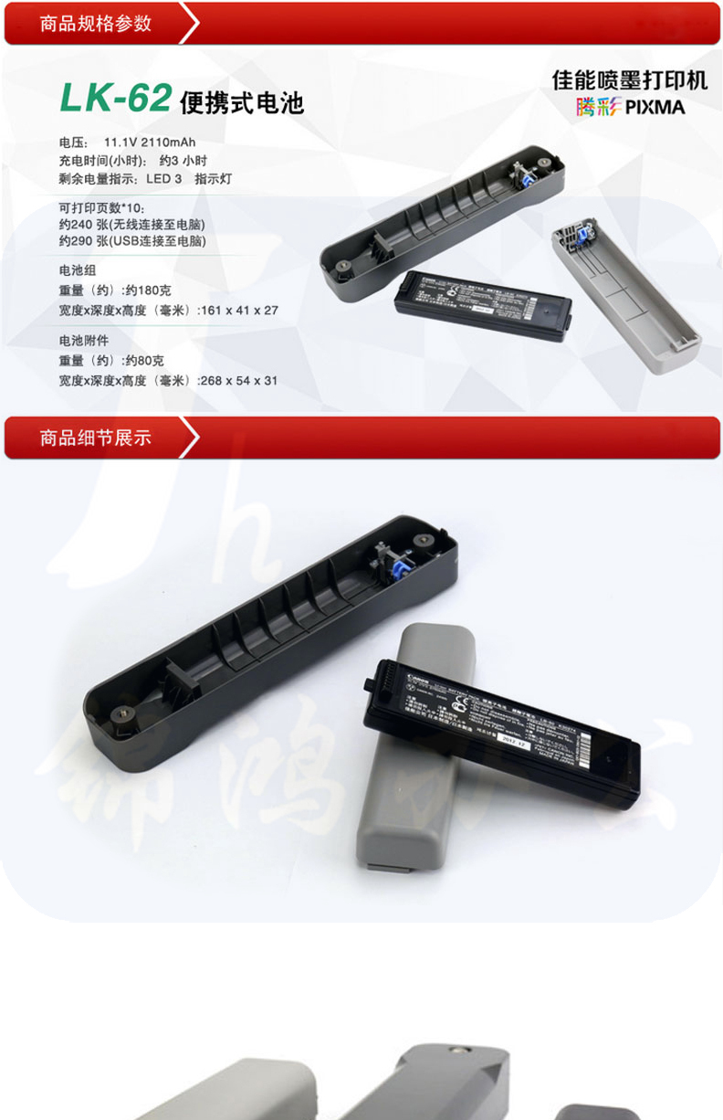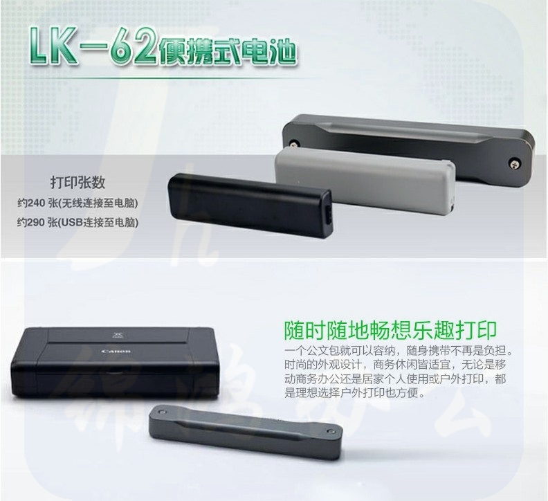 佳能 便携式电池 LK-62 IP110 I100打印机专用电池