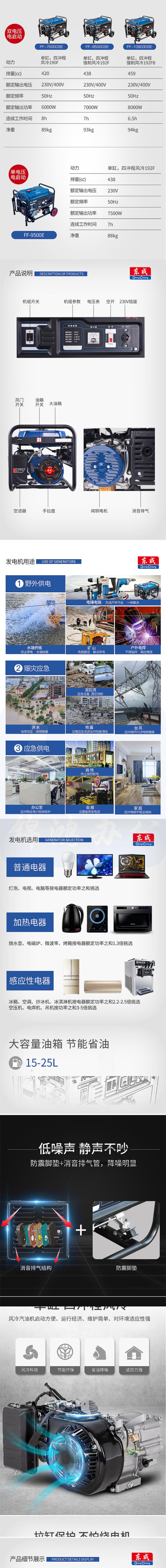 东成 FF-9500E 汽油发电机 电起动 230V 7.5Kw