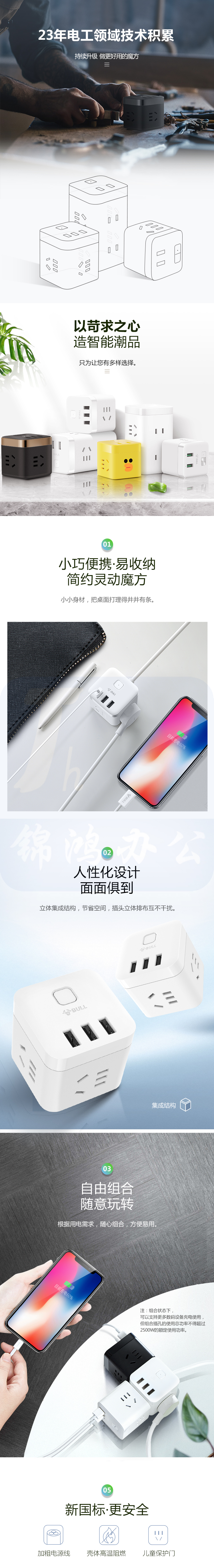 公牛 GN-U303WH (黑色) 无线魔方 3USB接口+3五孔