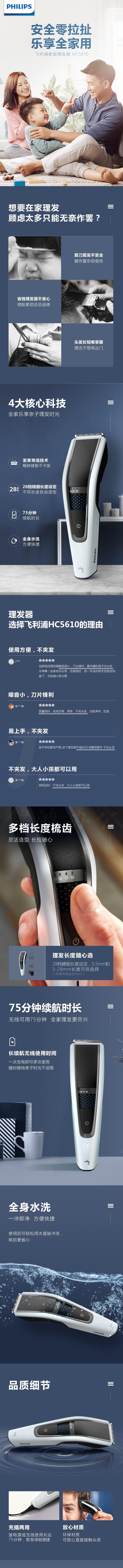 飞利浦(PHILIPS) 理发器电推剪家用电推子儿童成人电动剃头刀 HC5610/15
