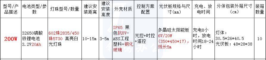 威诺华 200W 亮友太阳能投光灯 光控+时控+遥控 IP65