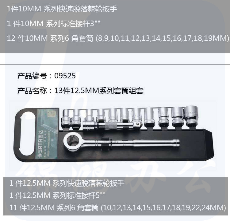 世达(SATA)13件12.5MM系列套筒组套货号09525