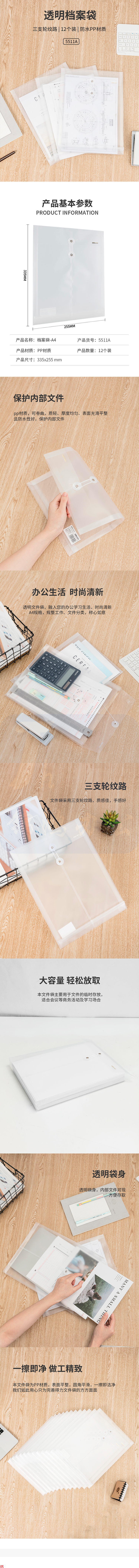 得力(deli) 5511A A4透明文件袋防水档案袋225*335mm 单位:个