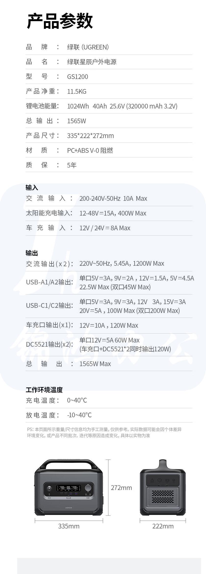 绿联 星辰户外电源GS1200W 自驾露营家用应急备用电池